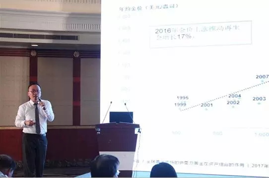招金專場(chǎng)研討會(huì)嘉賓進(jìn)行了精彩演講,宋鈺勤介紹黃金貨幣屬性再認(rèn)識(shí),通過案例總結(jié)說明現(xiàn)今是儲(chǔ)藏或配置黃金最好時(shí)機(jī),通過分析新時(shí)期中國(guó)黃金市場(chǎng)的特點(diǎn),指出“一帶一路”框架下黃金市場(chǎng)面臨的機(jī)遇。