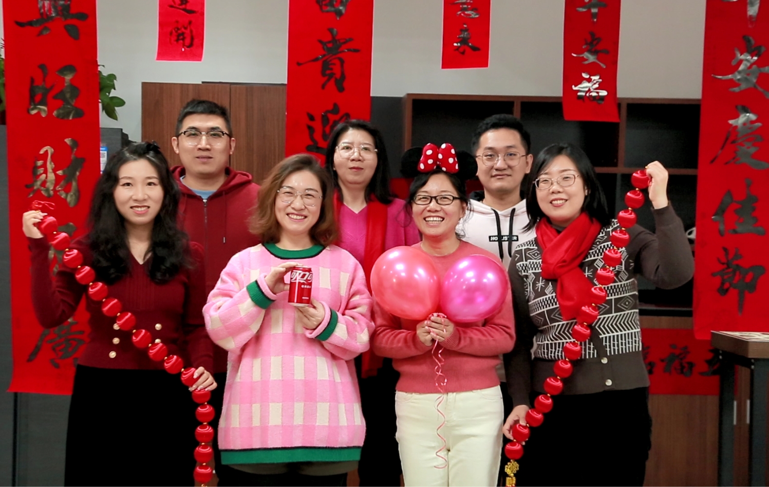 公司活動室設(shè)置拍照打卡點,布置了長型對聯(lián)、燈籠、福字等裝飾品,同時準(zhǔn)備了各類干果、糖果供大家享用,各部在拍照打卡點共同拍攝部門合影。