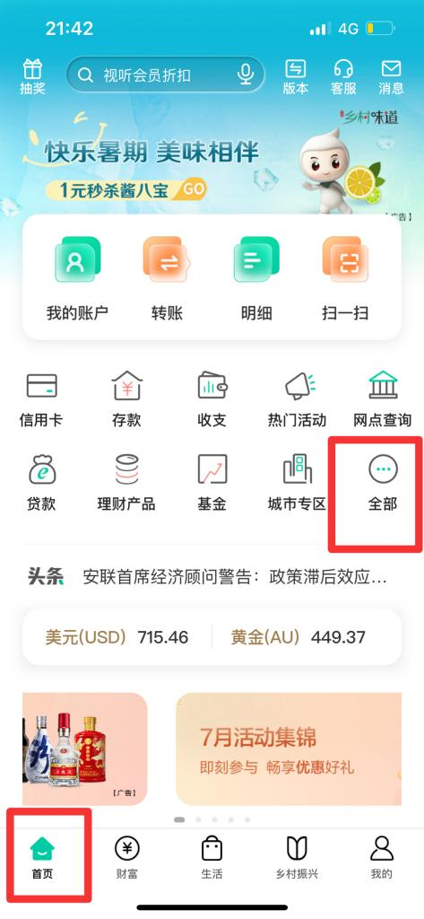 打開“中國農(nóng)業(yè)銀行”手機(jī)APP-首頁-點(diǎn)擊“全部”