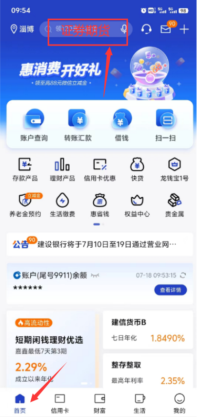 首頁搜索欄搜索“證券期貨”。