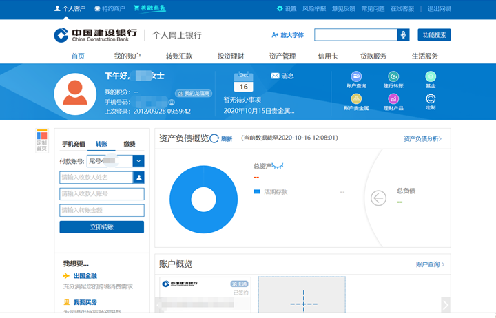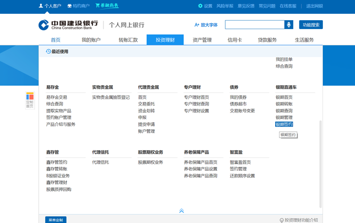 登錄網(wǎng)上銀行,選擇”投資理財(cái)“。