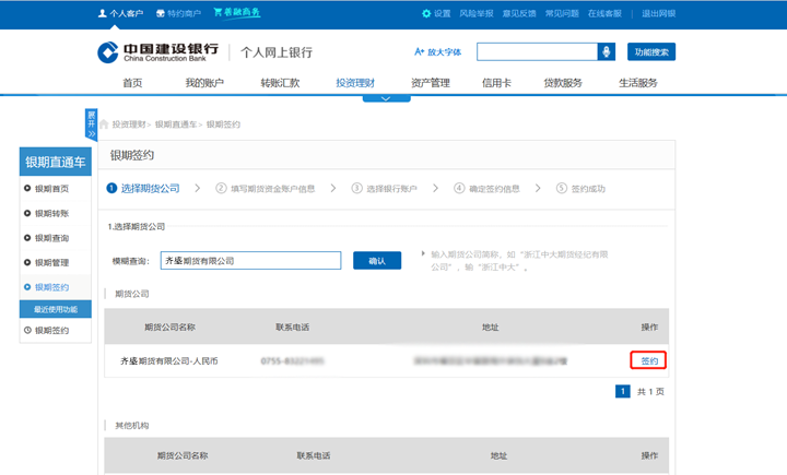點(diǎn)擊“銀期直通車”欄目下的“銀期簽約”。