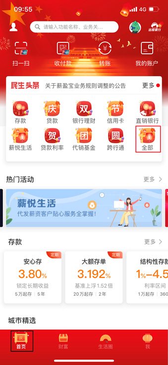 登錄手機銀行,點擊左下角“首頁-全部”。