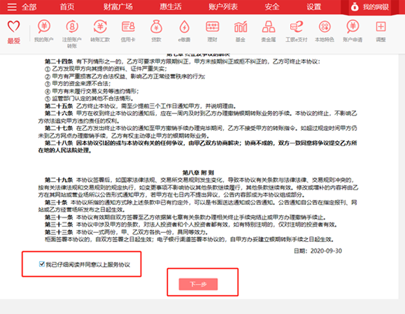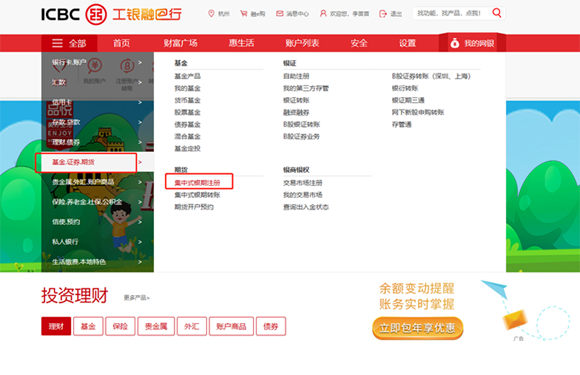 選擇“基金-證券-期貨”-“集中式銀期注冊(cè)”。